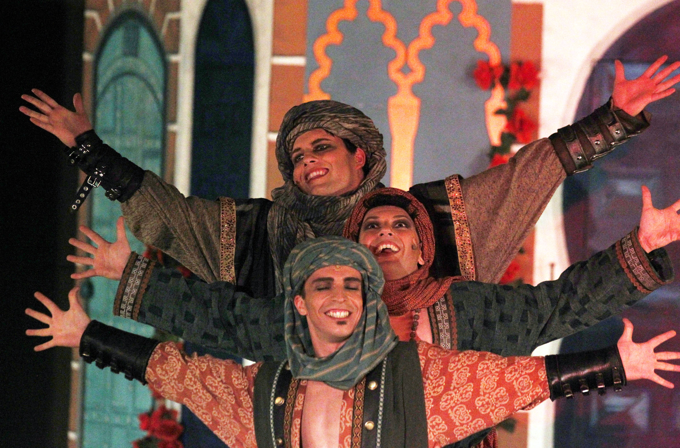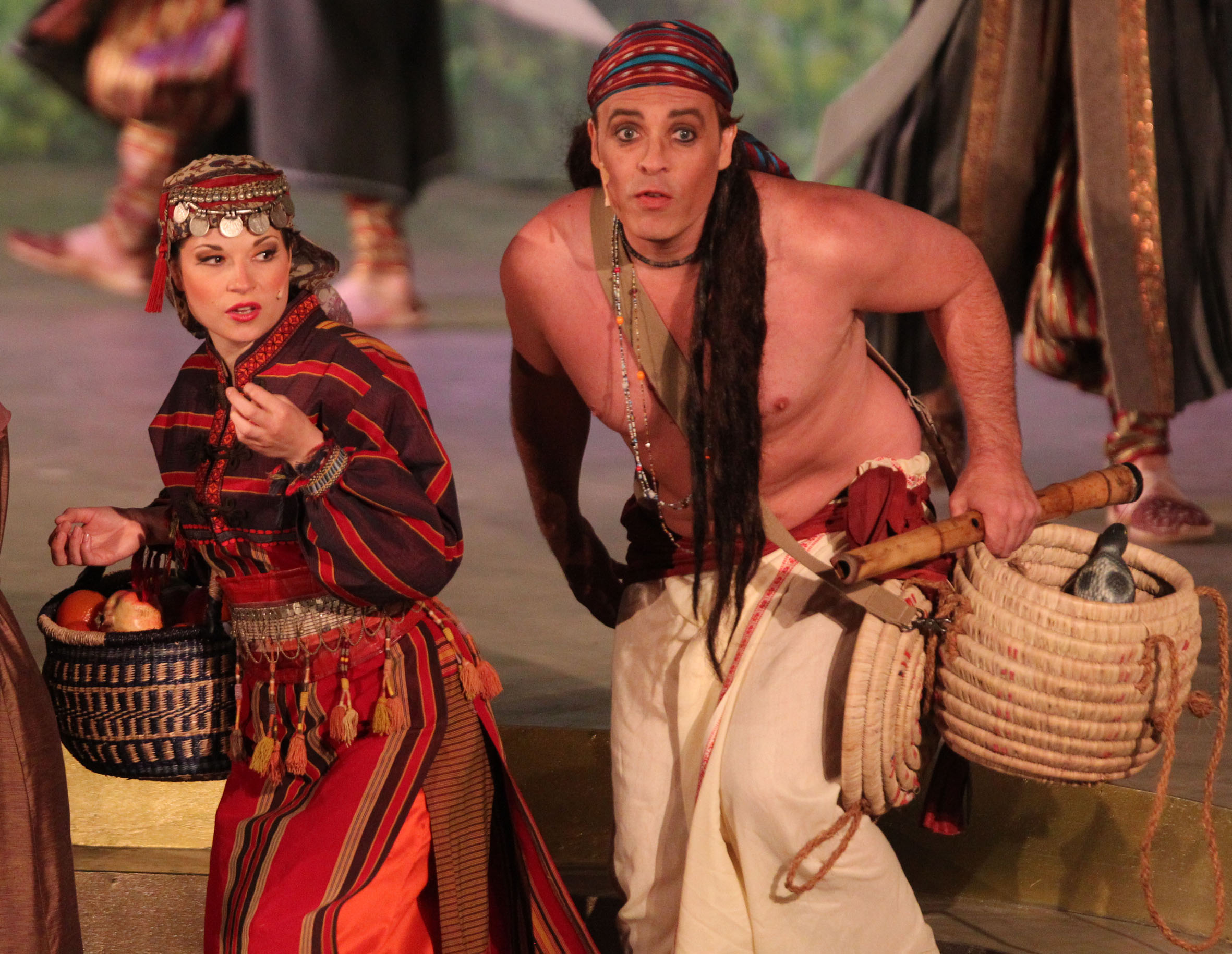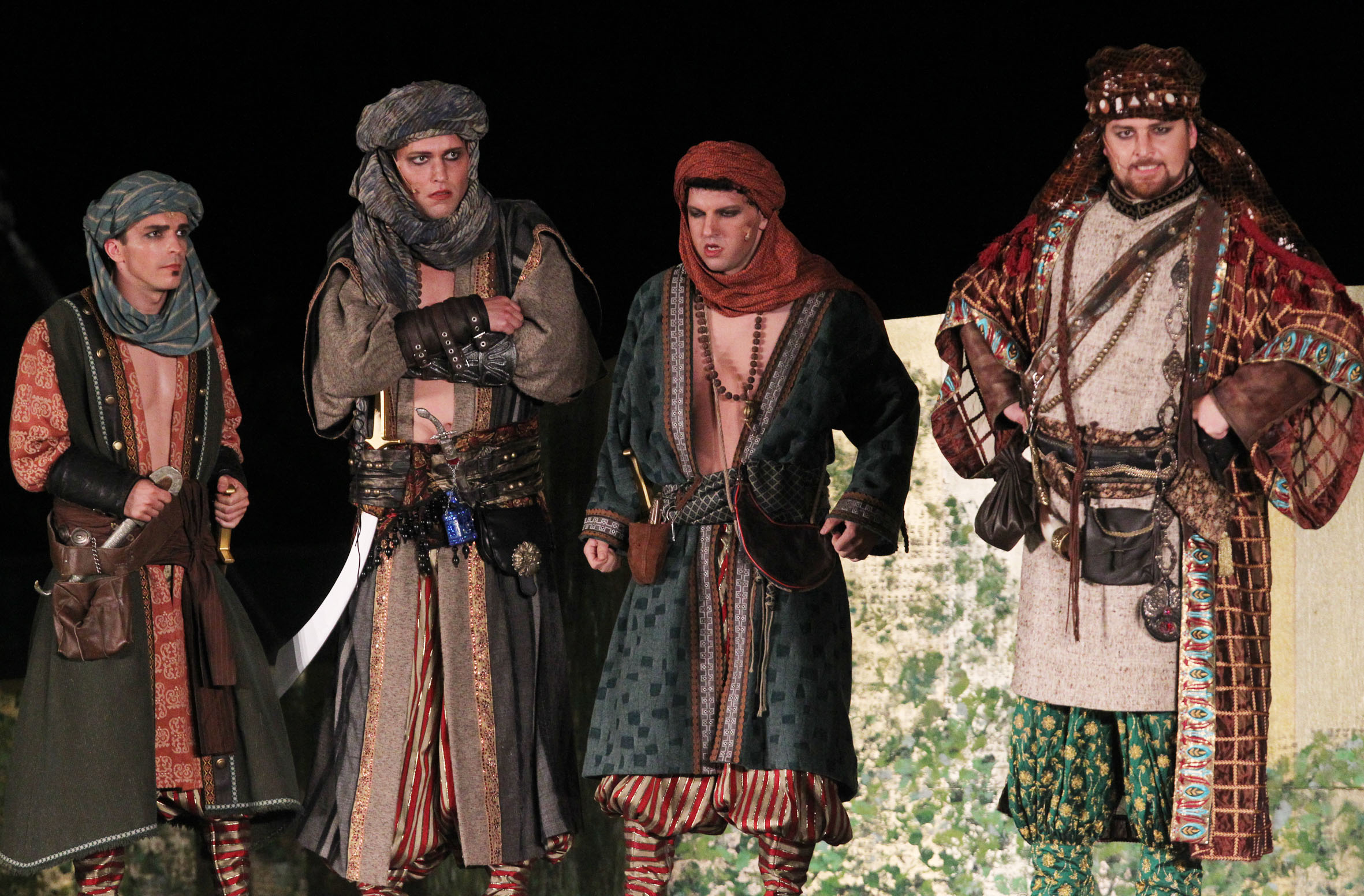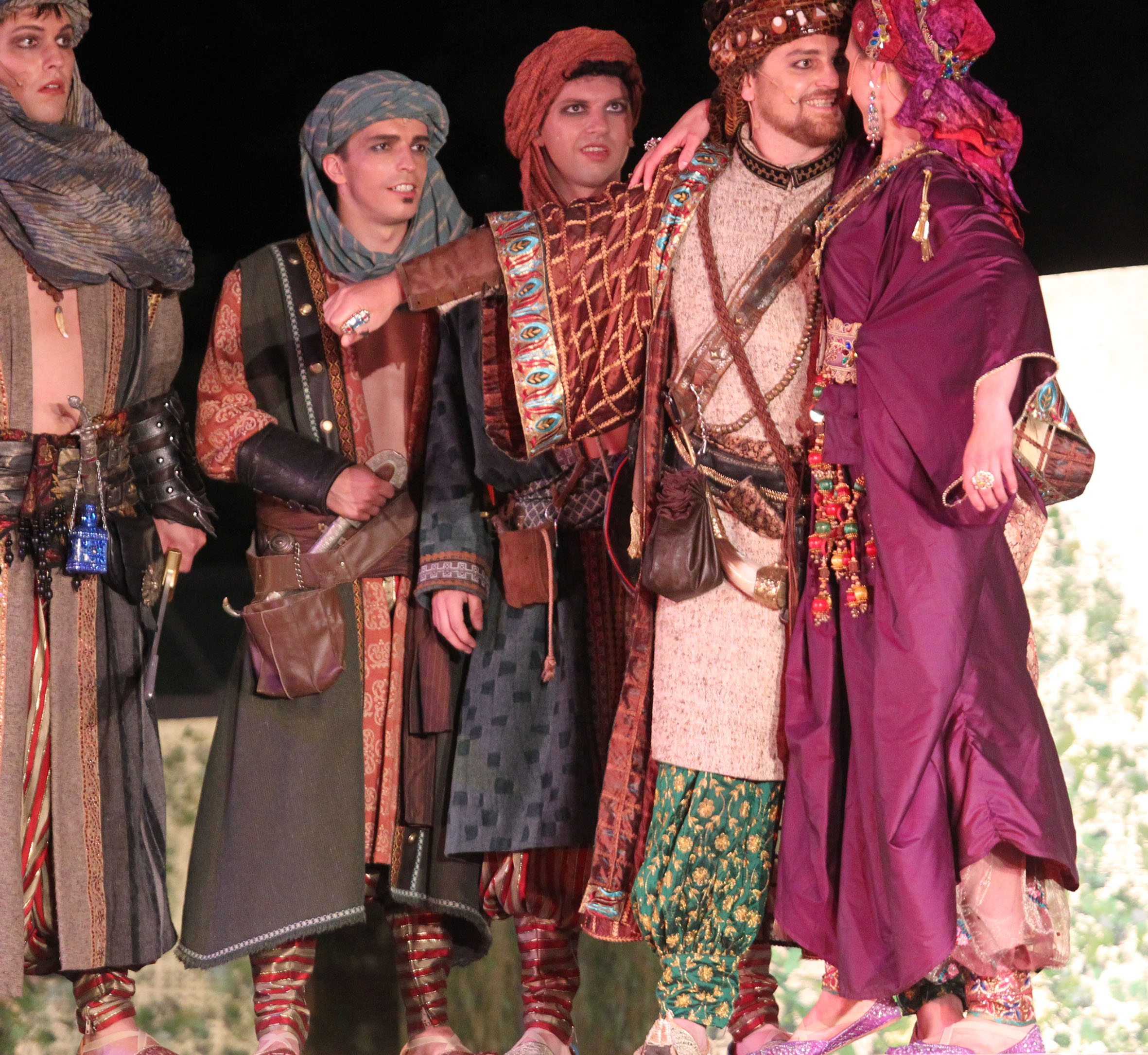Auf diesem Fest verliebt sich Ali Baba in Mardschana, die Sklavin seines Bruders, die die Gäste mit einem geheimnisvollen Tanz in ihren Bann zieht. Zum ersten Mal wächst in ihm der Wunsch, ein reicher Mann zu sein. Als er am Morgen darauf im Wald zufällig drei Räuber beobachtet, die mit den Worten „Sesam öffne dich!“ in einem Berg verschwinden, beginnt ein großes Abenteuer über Gold, Geschichten, Räuber und wahre Liebe ...
